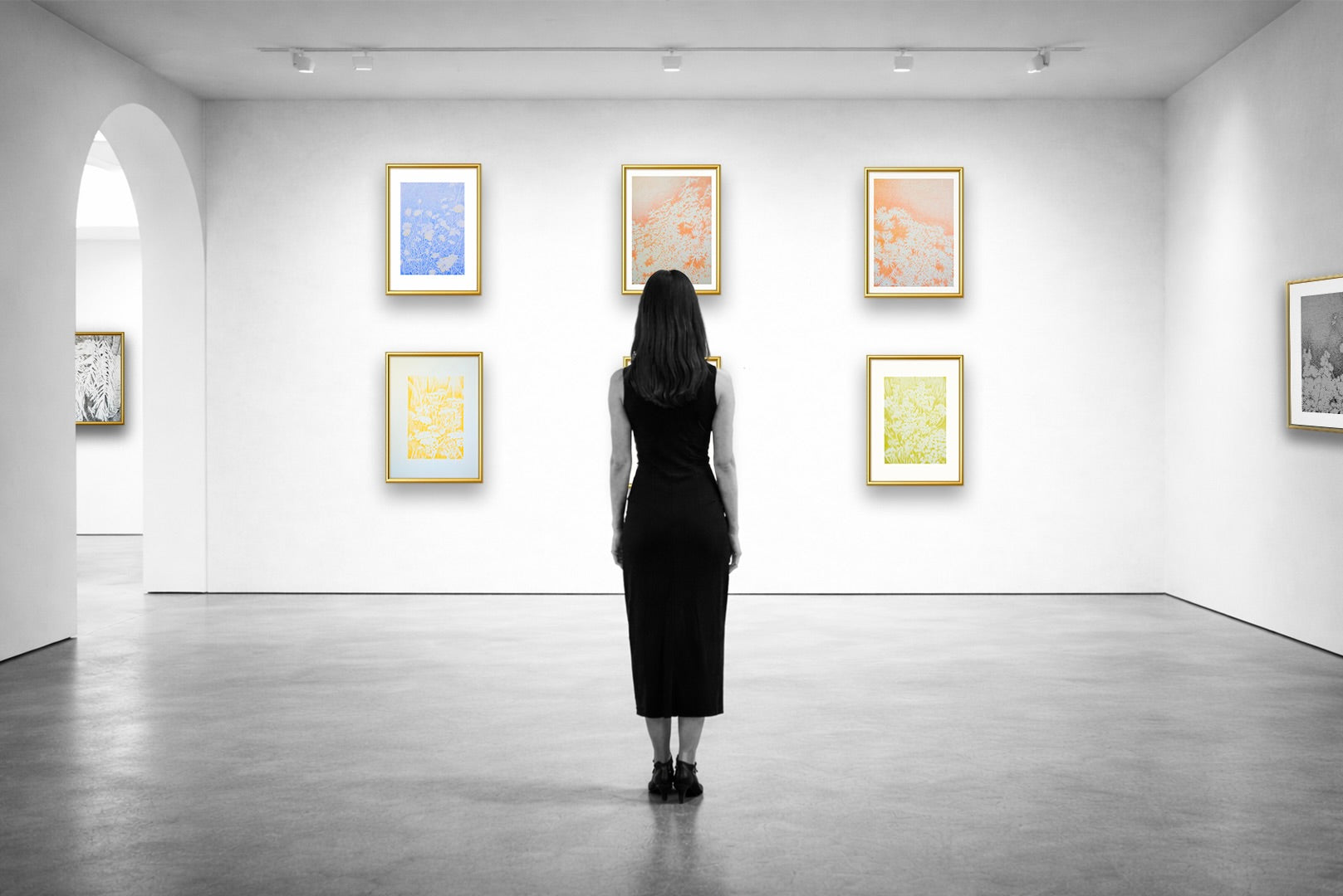 explorez ses œuvres combinent librement l’acrylique, l’huile, le carbone et les crayons de couleur, dépeignant sa vision intérieure conceptualisée du moment, revisitant ses impressions passées et présentes, leur donnant une nouvelle forme